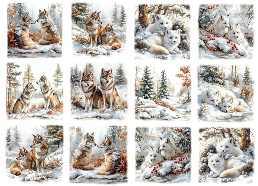 Papier ryżowy A4 do decoupage Artando - wilki, lisy, las, zima