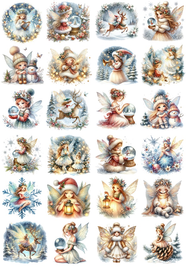 Papier ryżowy A4 do decoupage Artando - wróżki, elfy, czarodziejki, zima, święta