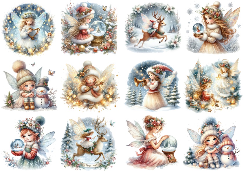 Papier ryżowy A4 do decoupage Artando - wróżki, elfy, czarodziejki, zima, święta