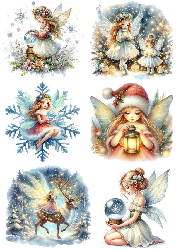Papier ryżowy A4 do decoupage Artando - wróżki, elfy, czarodziejki, zima, święta