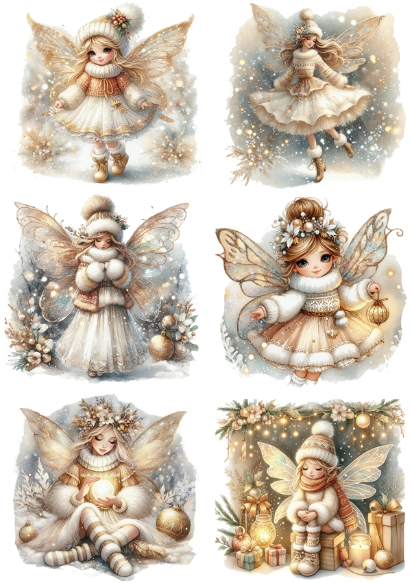 Papier ryżowy A4 do decoupage Artando - wróżki, elfy, czarodziejki, zima, święta