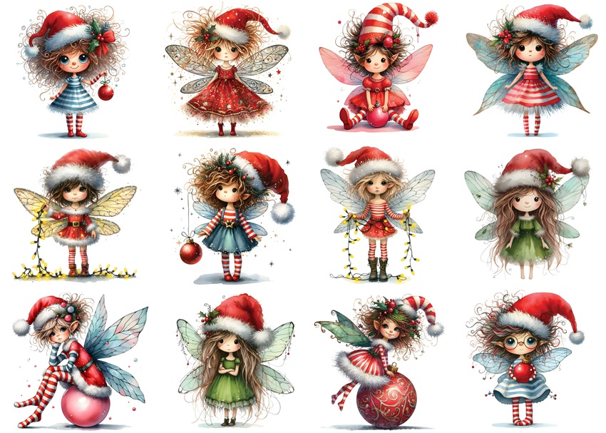 Papier ryżowy A4 do decoupage Artando - wróżki, elfy, czarodziejki, zima, święta