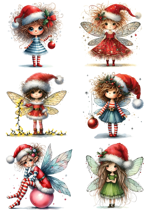 Papier ryżowy A4 do decoupage Artando - wróżki, elfy, czarodziejki, zima, święta