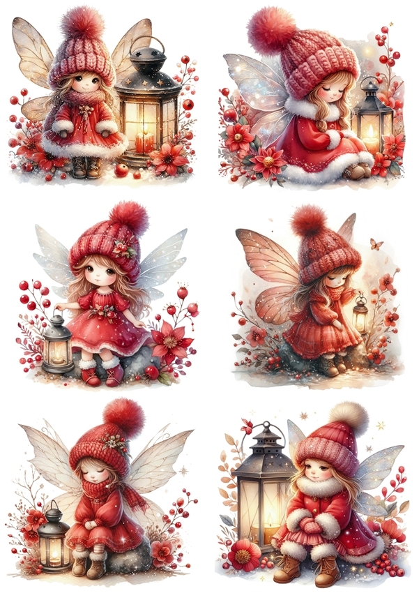 Papier ryżowy A4 do decoupage Artando - wróżki, elfy, lampiony, kwiaty, zima