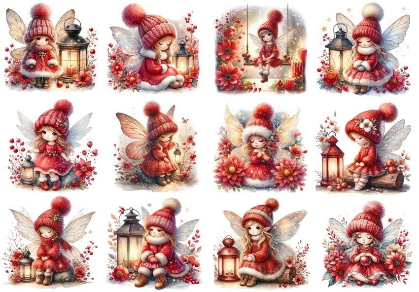 Papier ryżowy A4 do decoupage Artando - wróżki, elfy, lampiony, kwiaty, zima