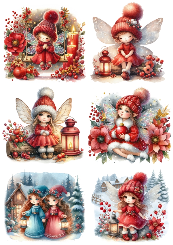 Papier ryżowy A4 do decoupage Artando - wróżki, elfy, lampiony, kwiaty, zima
