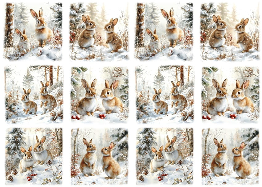 Papier ryżowy A4 do decoupage Artando - zające, zajączki, las, zima