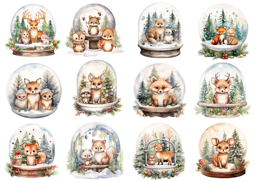 Papier ryżowy A4 do decoupage Artando - zwierzęta, kula śnieżna, zima