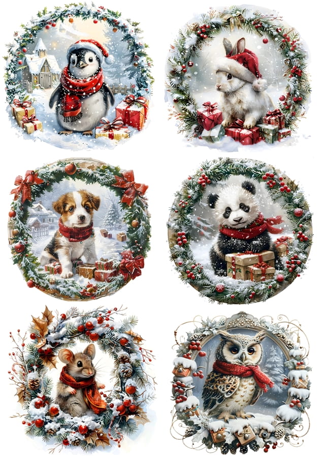 Papier ryżowy A4 do decoupage Artando - zwierzęta, ptaki, zima, święta