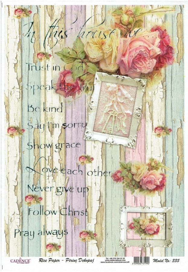 Papier ryżowy A4 do decoupage - kwiaty, róże, deski, napisy