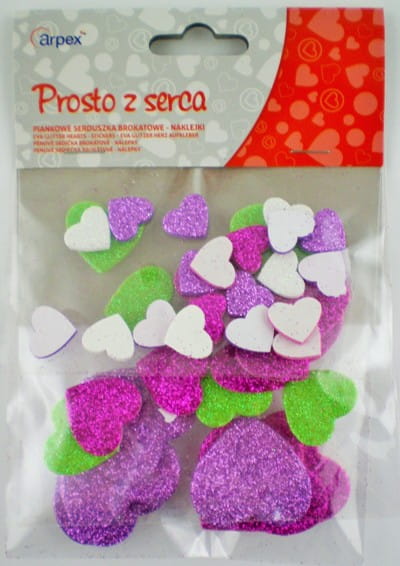 Serduszka są samoprzylepne, pod spodem posiadają przylepiec.