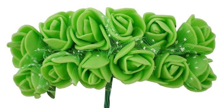 Różyczki z pianki z tiulem 15mm 12 szt - zielone