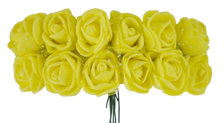 Różyczki z pianki z tiulem 2cm 12 szt - żółte