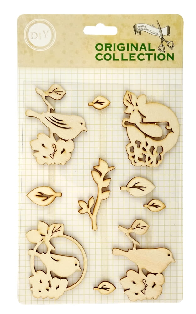 Scrapki drewniane zestaw - ptaki, liście, kwiaty, gałązka