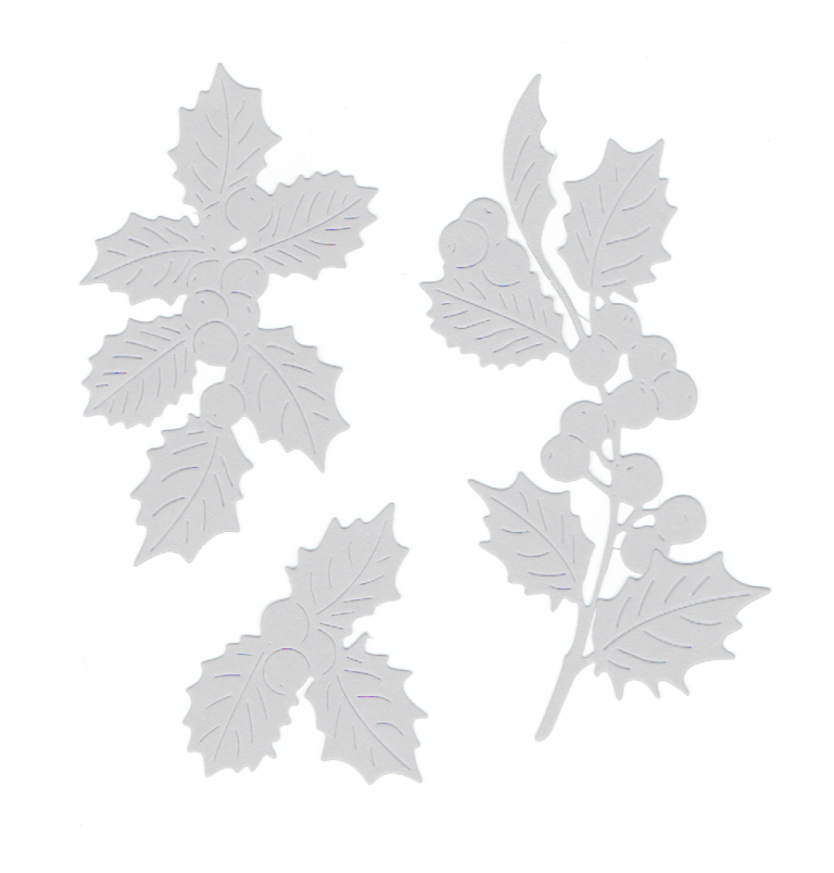 Scrapki papierowe białe perłowe Liście, ostrokrzew - 1 zestaw
