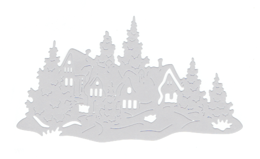 Scrapki papierowe białe perłowe domy, choinki - 5 sztuk
