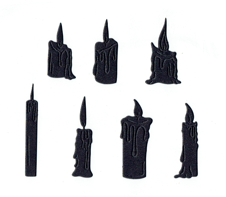 Scrapki papierowe czarne perłowe świece - 7 sztuk