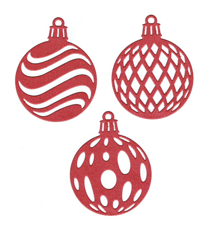 Scrapki papierowe czerwone perłowe bombki - 3 sztuki