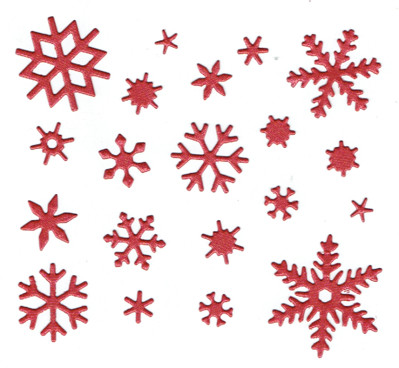 Scrapki papierowe czerwone perłowe śnieżynki, gwiazdki - 1 zestaw
