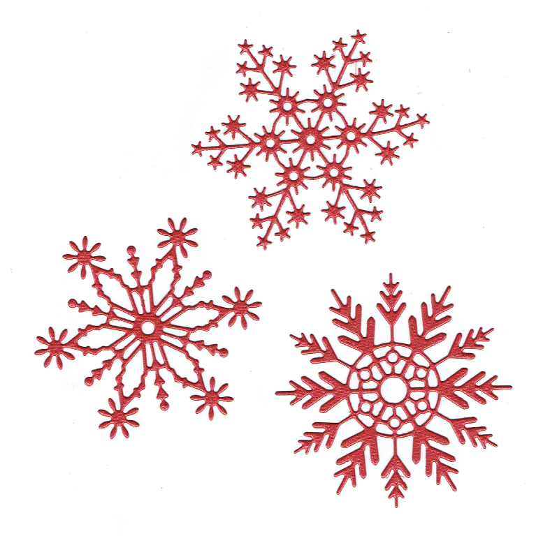 Scrapki papierowe czerwone perłowe śnieżynki, gwiazdki - 3 sztuki