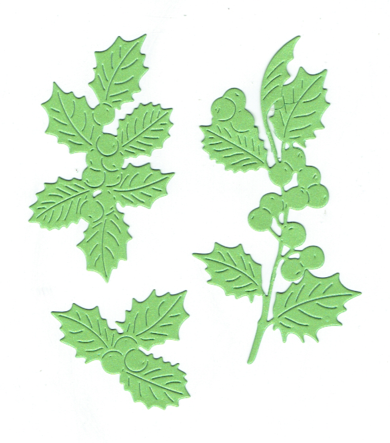 Scrapki papierowe jasnozielone perłowe Liście, ostrokrzew - 1 zestaw