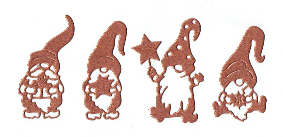 Scrapki papierowe miedziane perłowe krasnale, skrzaty, gnomy - 4 sztuki