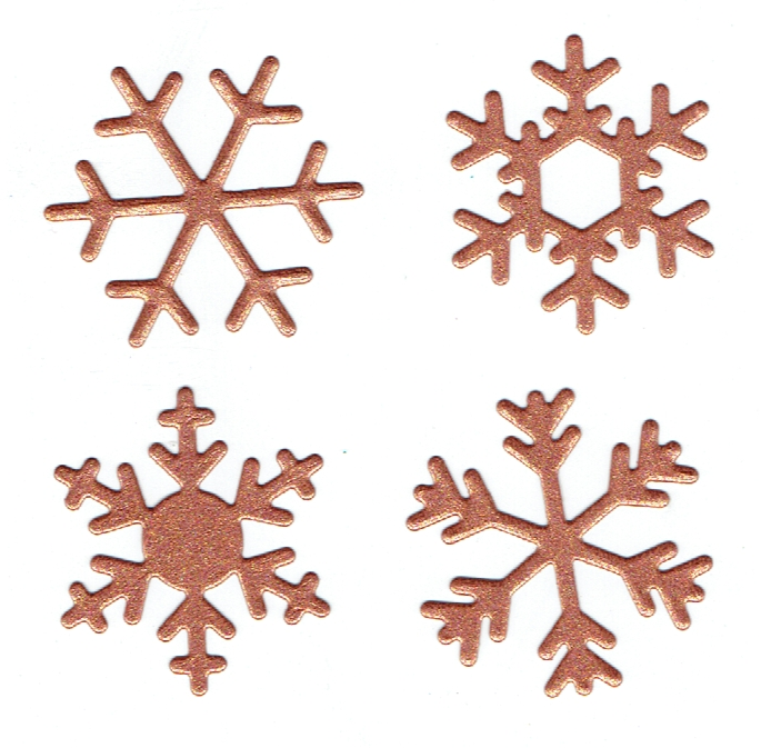 Scrapki papierowe miedziane perłowe śnieżynki, gwiazdki - 4 sztuki