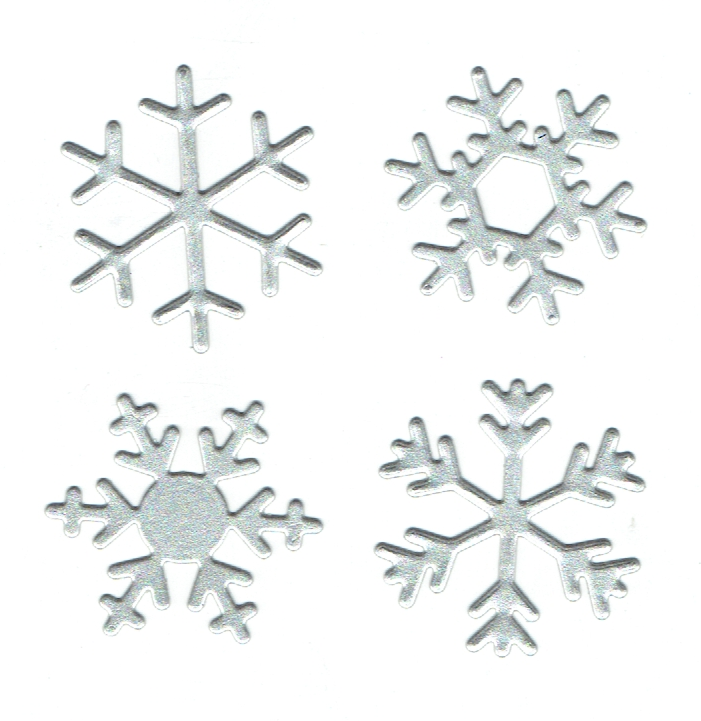 Scrapki papierowe srebrne perłowe śnieżynki, gwiazdki - 4 sztuki
