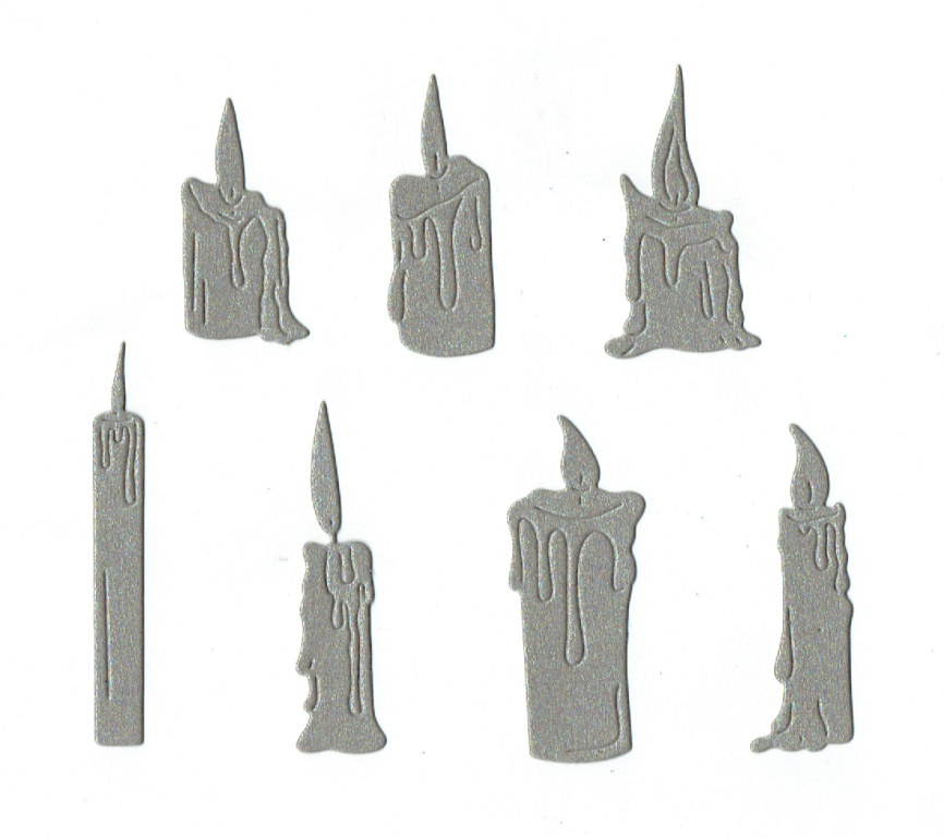 Scrapki papierowe srebrne perłowe świece - 7 sztuk