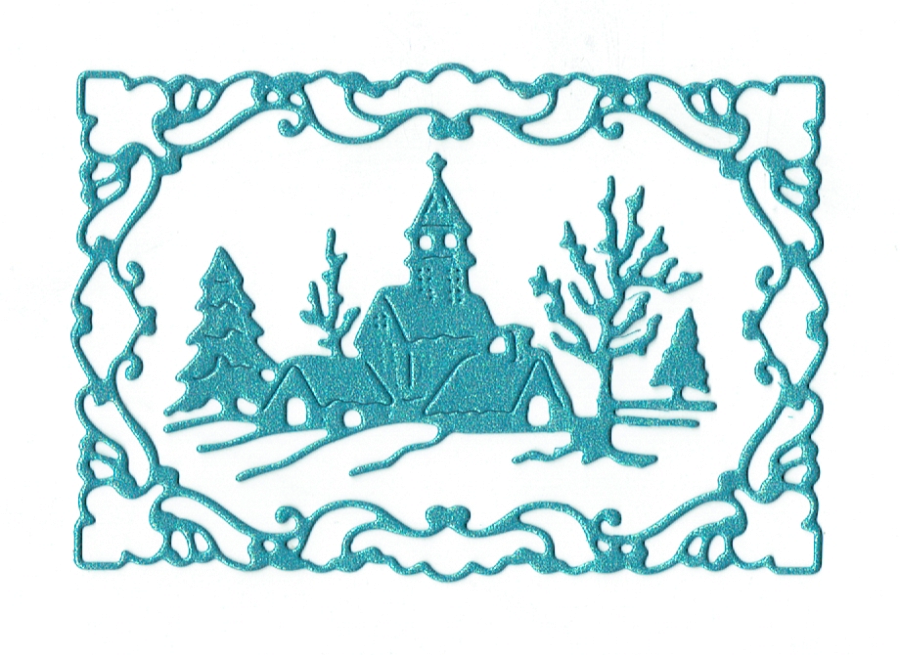 Scrapki papierowe turkusowe perłowe kościół, choinki, ramka - 1 zestaw