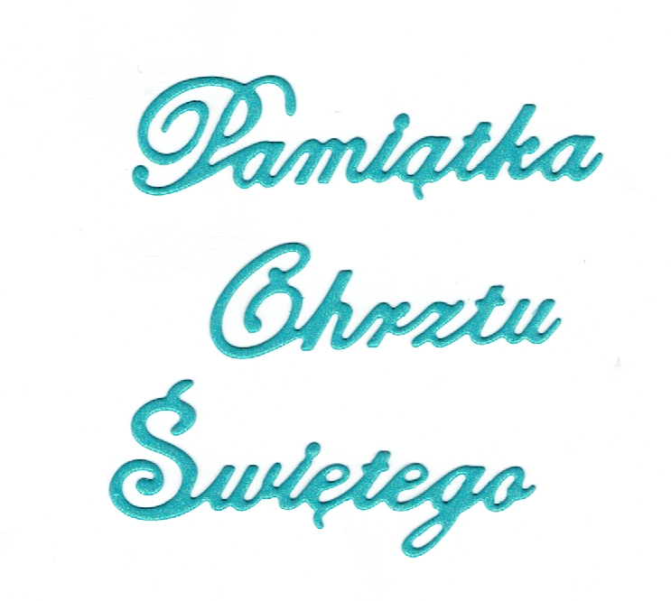 Scrapki papierowe turkusowe perłowe napis "Pamiątka Chrztu Świętego" - 5 sztuk