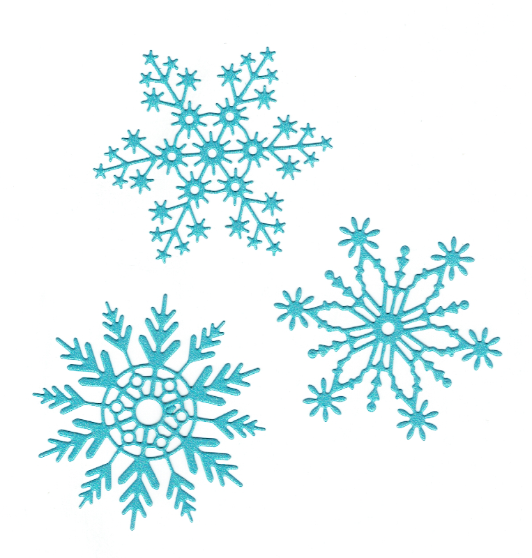 Scrapki papierowe turkusowe perłowe śnieżynki, gwiazdki - 3 sztuki