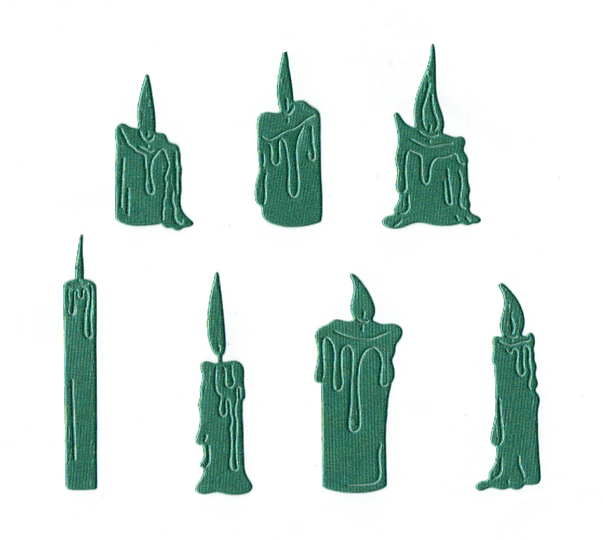 Scrapki papierowe zielone perłowe świece - 7 sztuk