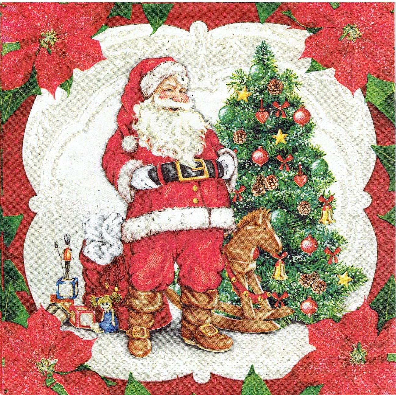 Serwetka decoupage 33x33 cm - Mikołaj, choinka, prezenty