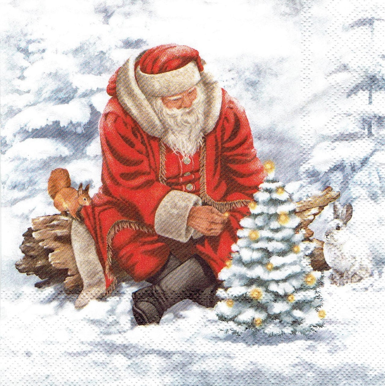 Serwetka decoupage 33x33 cm - Mikołaj, choinka, zwierzęta