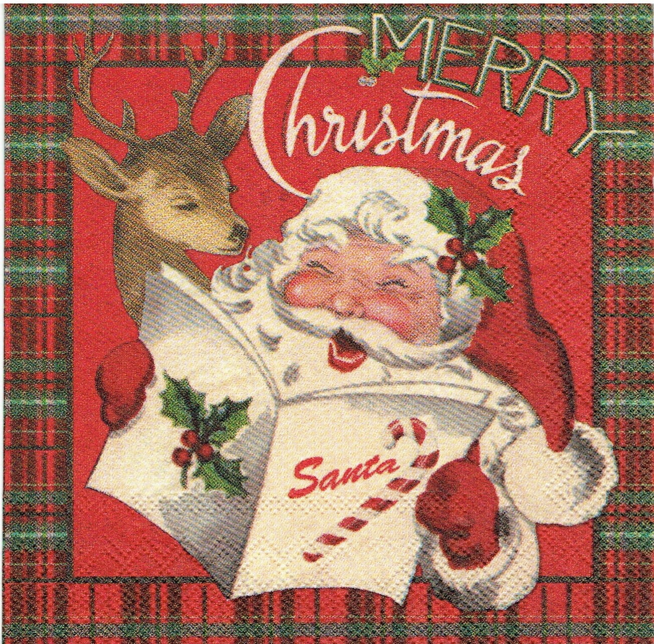 Serwetka decoupage 33x33 cm - Mikołaj, renifer, święta