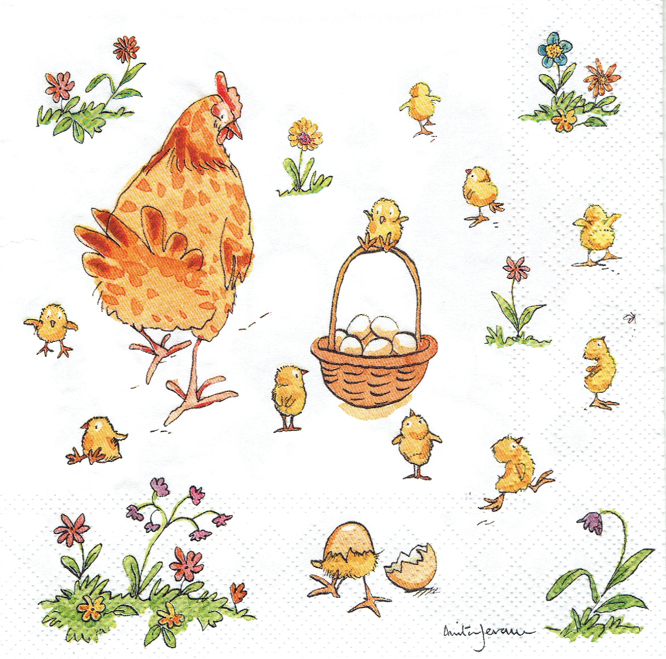 Serwetka decoupage 33x33 cm - Wielkanoc, kura, kurczaki, kwiaty