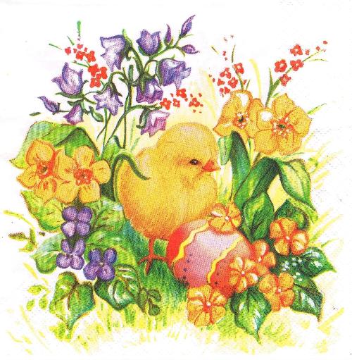 Serwetka decoupage 33x33 cm - Wielkanoc, kurczak, kwiaty