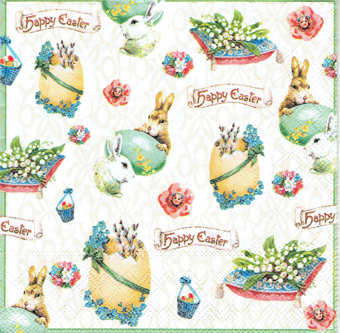Serwetka decoupage 33x33 cm - Wielkanoc, zające, pisanki, kwiaty