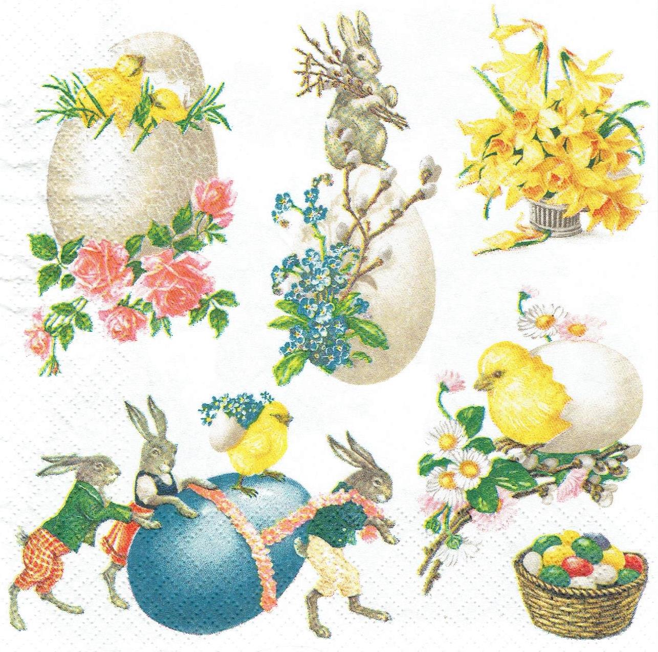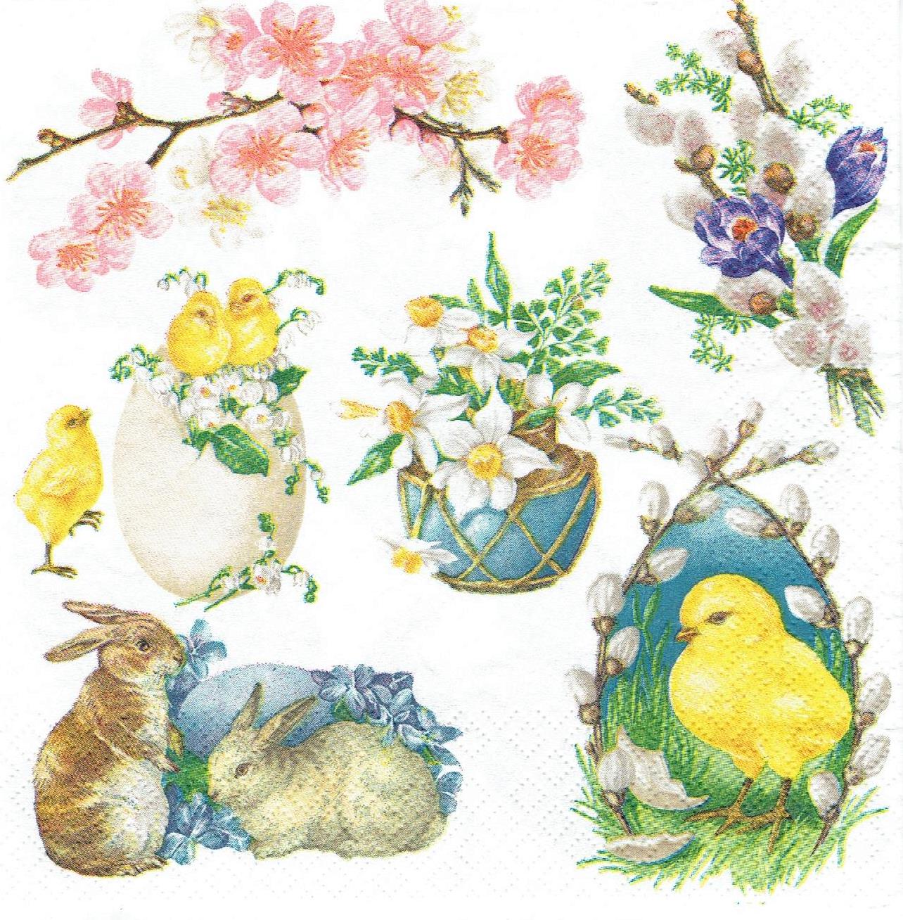 Serwetka decoupage 33x33 cm - Wielkanocne obrazki, baranek, kurczaki, kwiaty, bazie