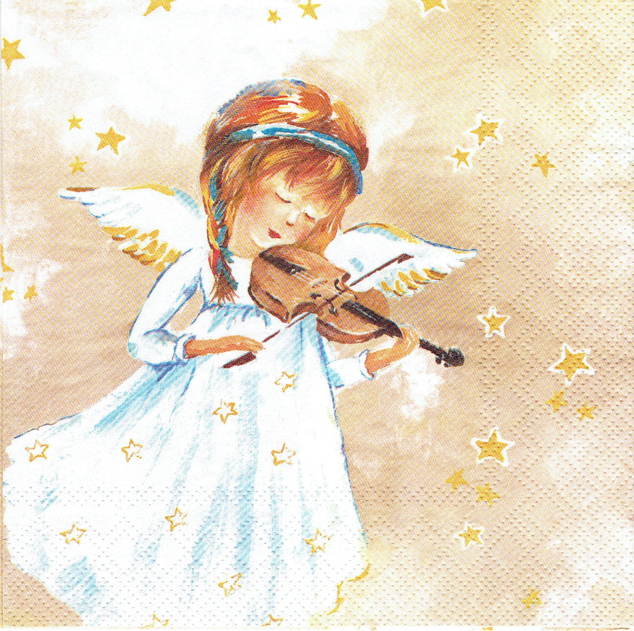Serwetka decoupage 33x33 cm - anioł, aniołek, skrzypce, gwiazdki