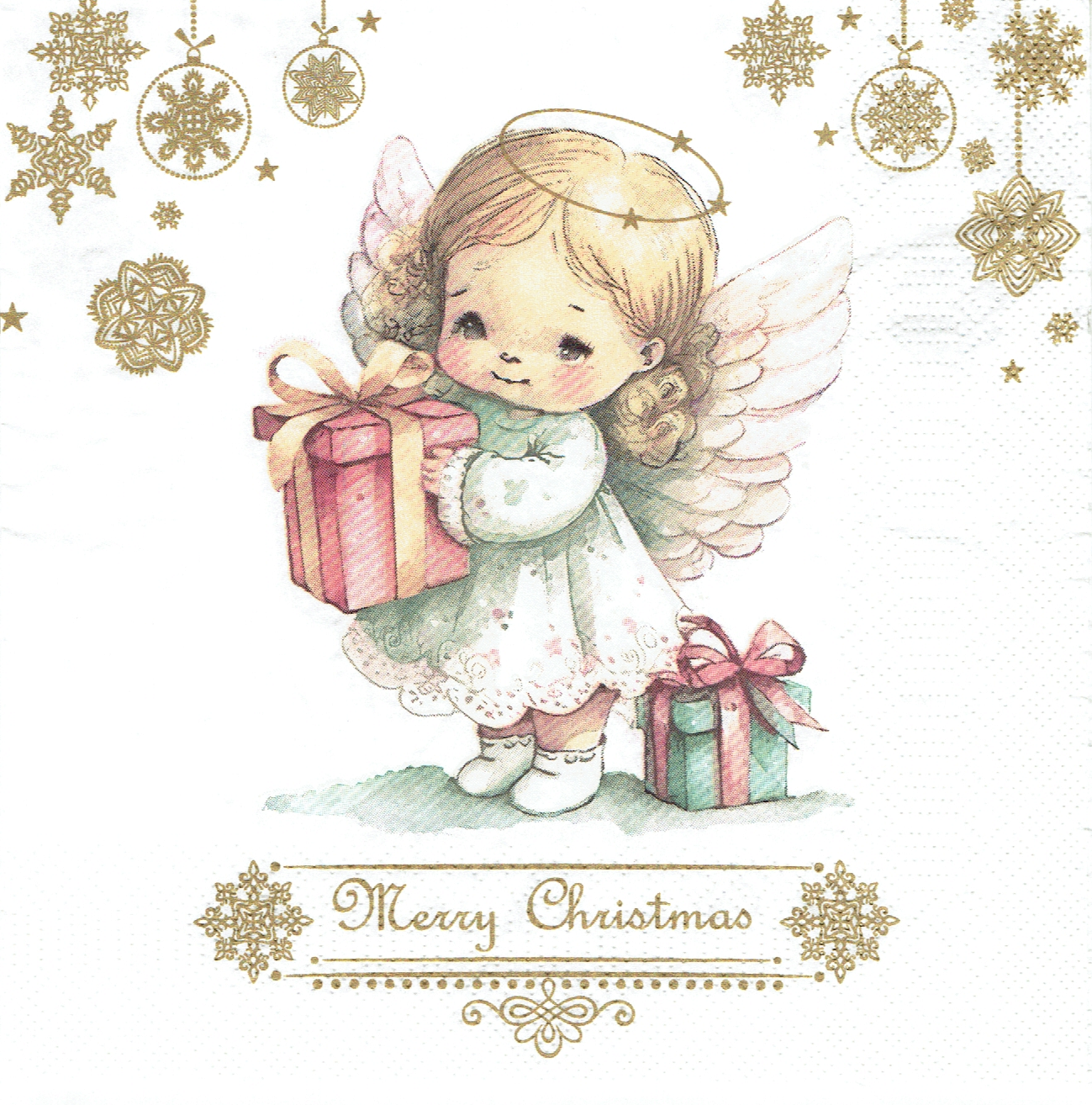 Serwetka decoupage 33x33 cm - anioł, aniołek, śnieżynki, święta