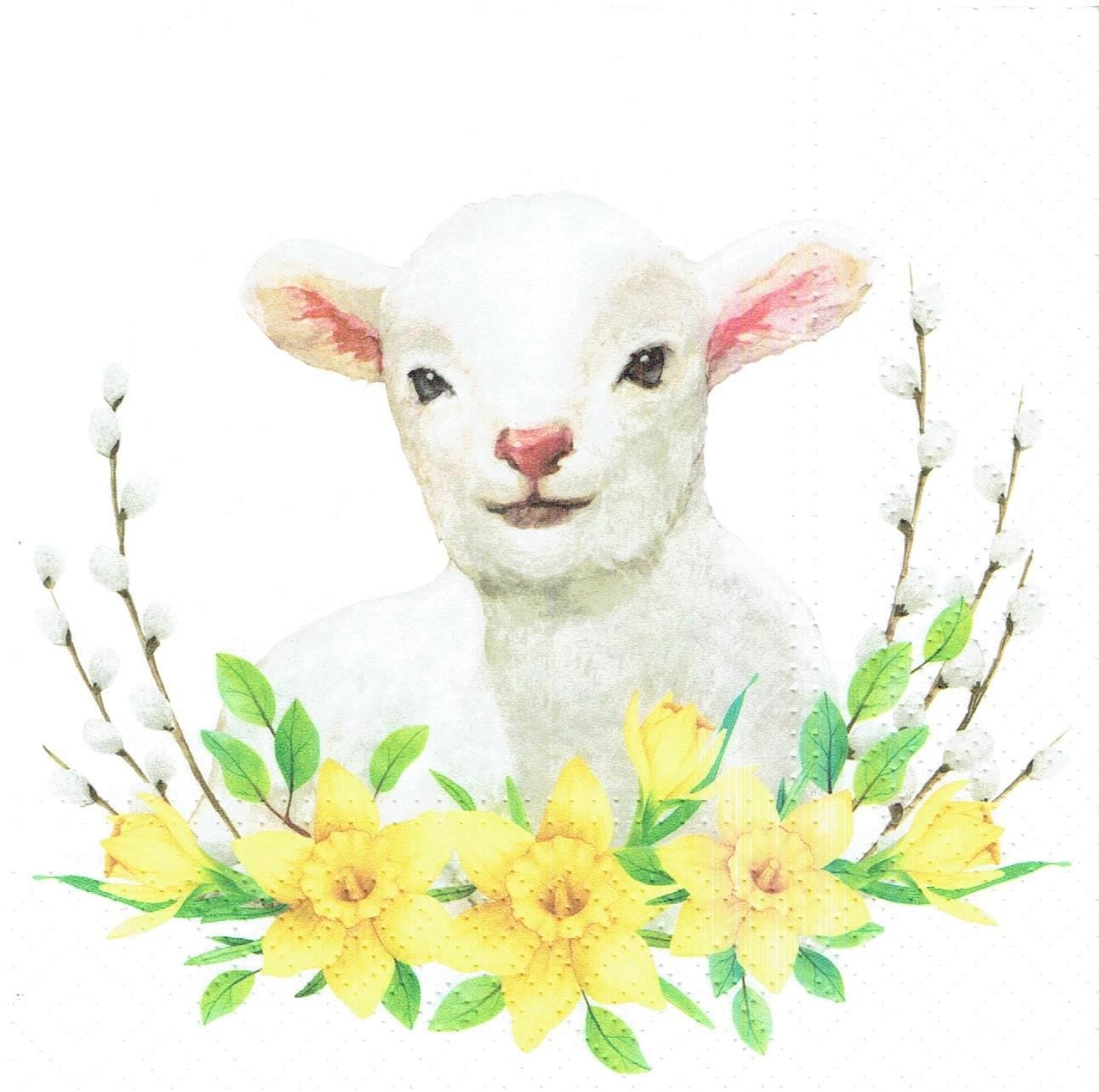 Serwetka decoupage 33x33 cm - baranek, kwiaty, bazie