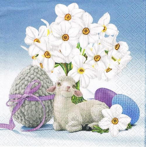 Serwetka decoupage 33x33 cm - baranek, narcyze i pisanki