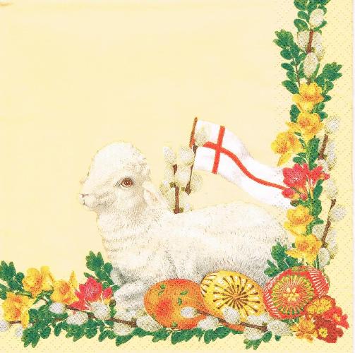 Serwetka decoupage 33x33 cm - baranek, pisanki, narcyze