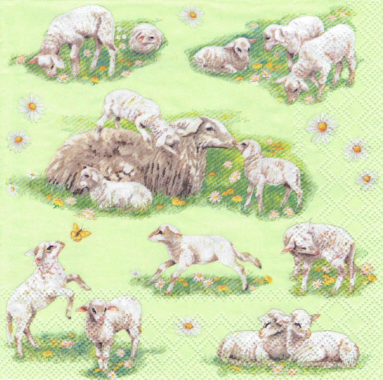 Serwetka decoupage 33x33 cm - baranki na łące