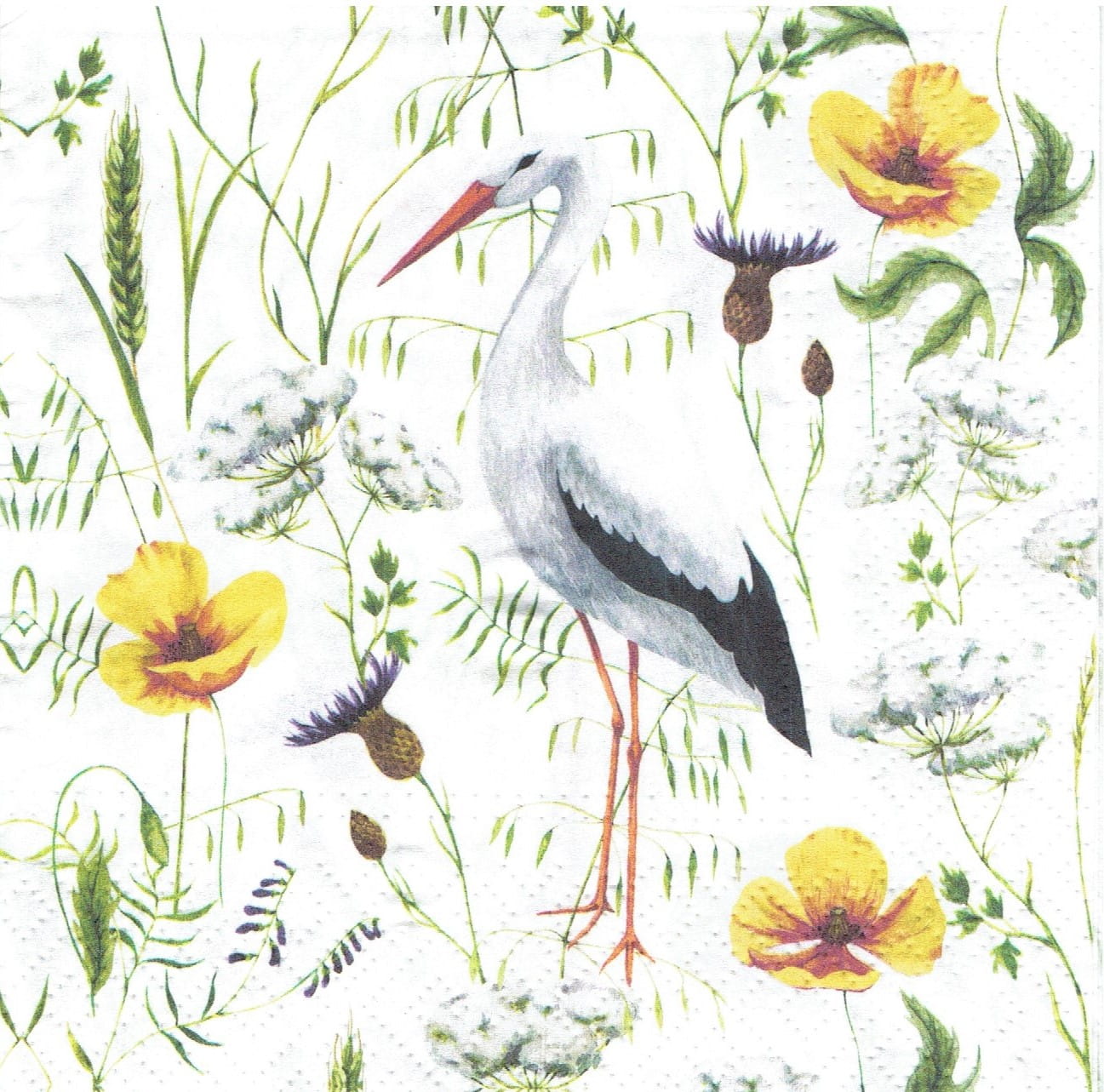 Serwetka decoupage 33x33 cm - bocian, ptak, kwiaty
