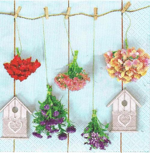 Serwetka decoupage 33x33 cm - budki, kwiaty