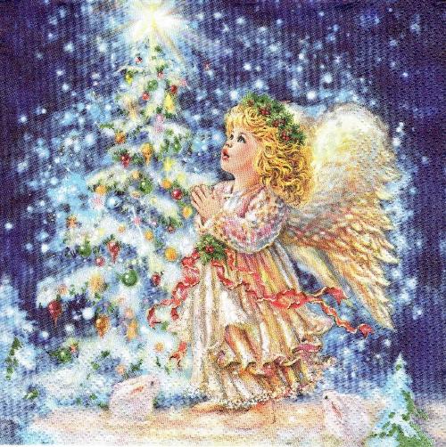 Serwetka decoupage 33x33 cm - choinka i aniołek