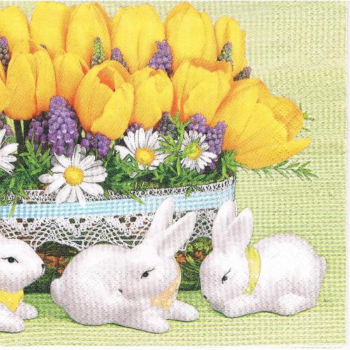 Serwetka decoupage 33x33 cm - donica z kwiatami i zajączki
